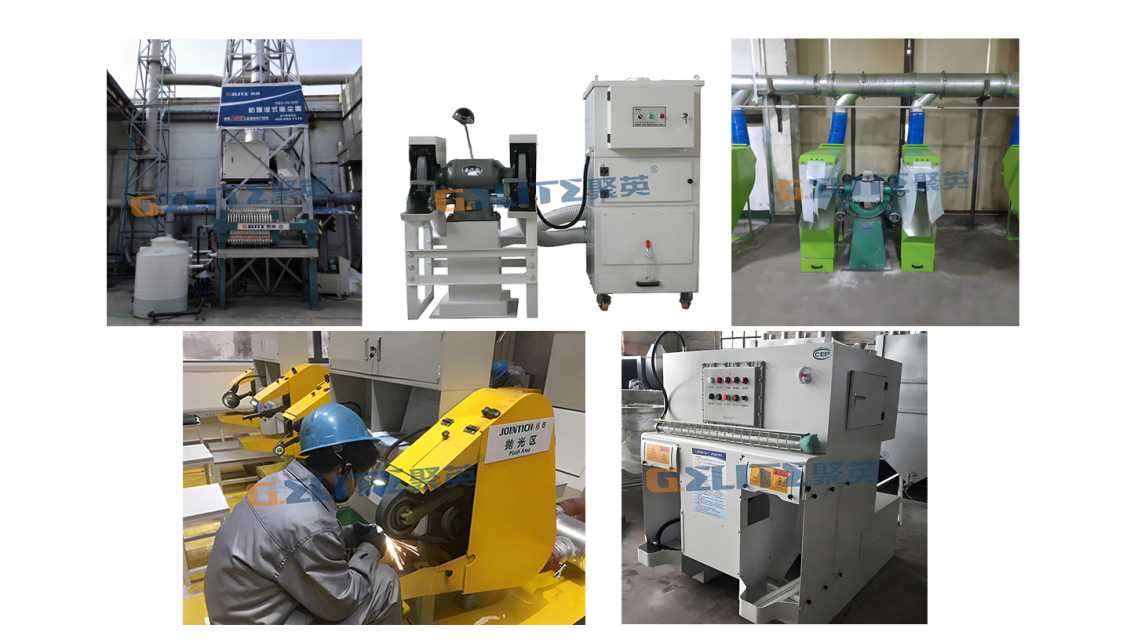針對于砂輪機打磨產生的金屬、棉絮等粉塵,具有風量小,濃度高等特點,根據不同金屬特性可配套普通除塵器/防爆除塵器、濕式除塵器收集治理。