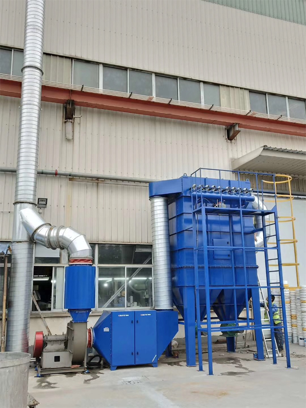 1)就地除塵:把除塵器直接安放在生產設備附近,就地捕集和回收粉塵,基本上不需敷設或只設較短的除塵管道。如鑄造車間混砂機的插入式袋式除塵器、直接坐落在風送料倉上的除塵機組和目前應用較多的各種小型除塵機組。這種系統布置緊湊、簡單、維護管理方便。