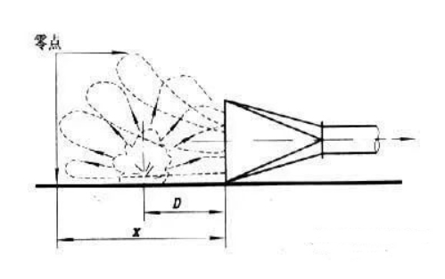 通:就是廢氣能暢通地被吸走。通常物料從高處落地時(shí),會(huì)向四面散發(fā),此時(shí),廢氣的散發(fā)速度稱(chēng)為飛揚(yáng)速度。物料落點(diǎn)處的廢氣飛揚(yáng)速度最大。隨著廢氣散發(fā)距離的增加,達(dá)到一定距離后,其散發(fā)速度為零。當(dāng)廢氣散發(fā)速度較大時(shí),不容易被捕集。而散發(fā)速度達(dá)到零時(shí),廢氣被捕集就容易得多了。速度達(dá)到零點(diǎn)的那一點(diǎn)稱(chēng)為控制點(diǎn),控制點(diǎn)到集氣罩口的距離為x,廢氣源至集氣罩口的距離為D,如下圖所示。