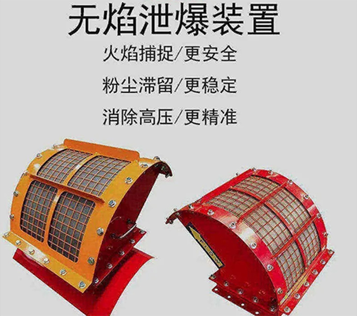 無焰泄放裝置也叫粉塵無焰泄爆裝置或者無焰泄放裝置是由火焰熄滅模板,泄爆片,防 爆接線盒和夾持器組成。可安裝于室內除塵箱體,泄爆片有信號裝置,可以通過接線盒與風機或者其他設備聯動。當發生粉塵爆炸時,爆破片對快速沖擊的爆燃壓力做出反應,并打開,以釋放壓力,膨脹的火球通過時打開的爆破片被熄滅模塊攔截。從而達到阻隔火焰以及通過打開防 爆門的燃燒和未燃燒的粉塵的作用,防止二次爆炸引起的傷害。