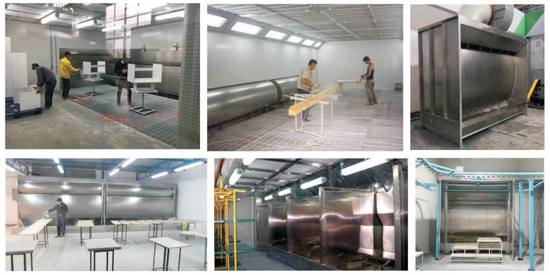 環(huán)保型水幕柜主要是由自吸水泵循環(huán)抽水往水簾板上均勻的流下來,使噴槍噴出來的漆霧和打磨產(chǎn)生的大顆粒粉塵被水簾板上的水打到下面水池里。再有少部分細微的漆霧和粉塵顆粒被末端的風機引入高效過濾器,通過排風管道排出車間外面或進行高空排放。